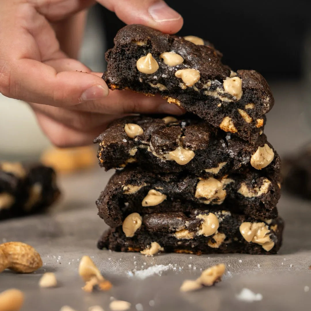 Para los amantes del chocolate intenso y la mantequilla de maní, las Dark Chocolate Peanut Butter Chip Cookies ofrecen una experiencia irresistible. Con una base de chocolate oscuro que realza el sabor profundo del cacao, estas galletas se complementan perfectamente con chips de mantequilla de maní, creando un contraste delicioso en cada bocado.