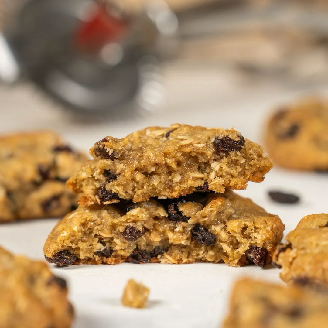 Déjate tentar por las Oatmeal Raisin Cookies estilo Levain Bakery. Son el equilibrio perfecto entre lo suave y lo crujiente, con un corazón tierno repleto de avena y pasas dulces. Ideal para quienes buscan ese toque clásico y casero en una galleta.
