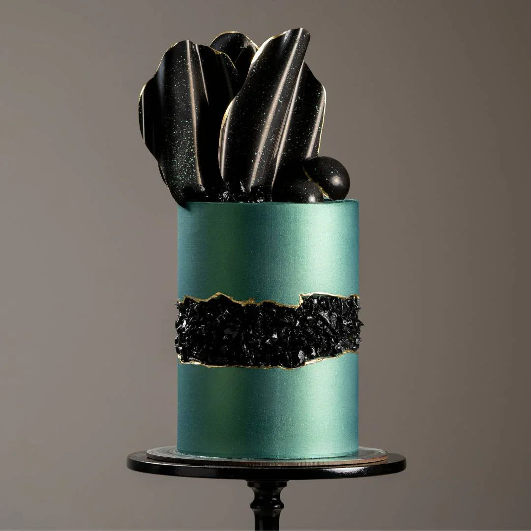 En el primer proyecto trabajaremos sobre un pastel en doble altura al que decoramos con la técnica de Fault line, una línea quebrada que nos da lugar a poder introducir cristales de isomalt de diferentes tamaños simulando un cordón de geodas. Veremos cómo aerografiar con pintura metalizada sobre buttercream y cómo hacer una hermosa decoración moderna con velas de chocolate y esferas con detalles de pintura.