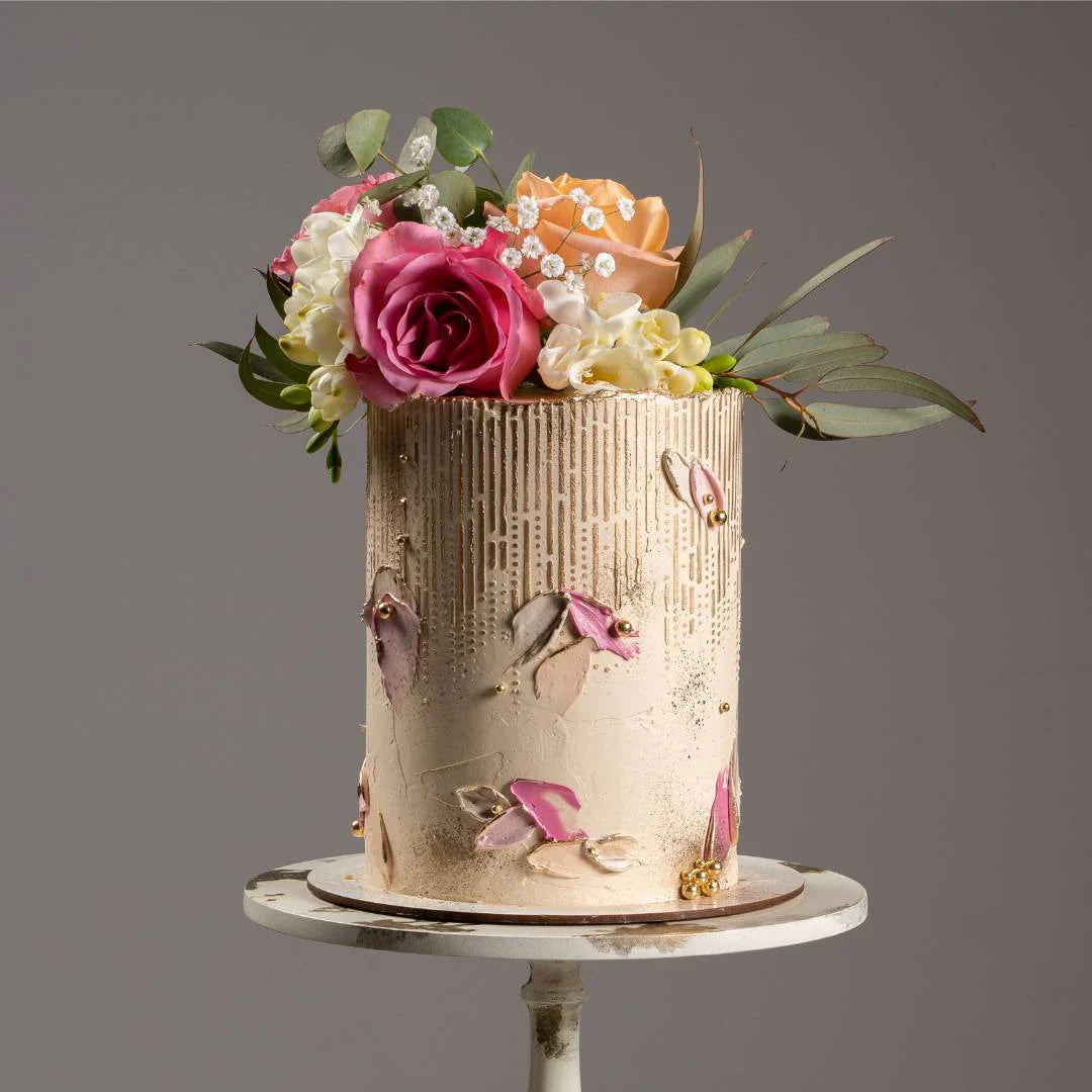 Para el siguiente proyecto vamos a realizar una de las técnicas más modernas sobre buttercream, el mármol craquelado. Una nueva forma de trabajar que nos dará terminaciones increíbles. Para coronar el diseño aplicaremos silver splash y un topper en wafer paper junto a unos pinches modernos.